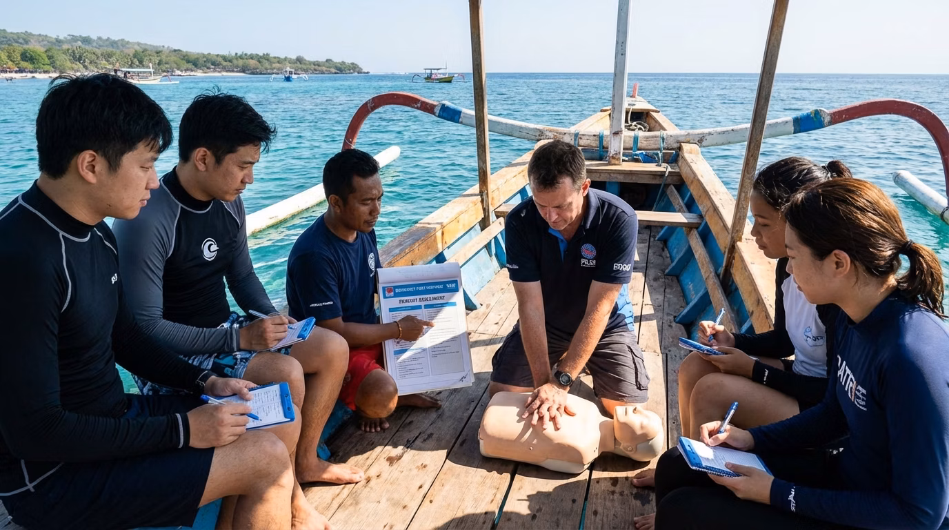 If you’re searching for PADI Emergency First Response Course Bali, here’s how the course usually runs. Finish the knowledge part first so your Bali time stays fun and in-water.