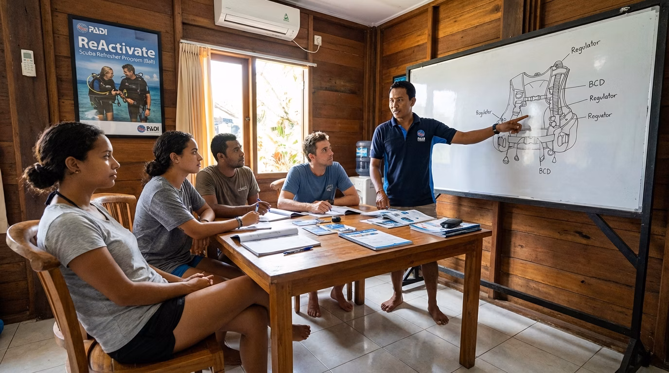 If you’re searching for PADI Reactivate Scuba Refresher Bali, here’s how the course usually runs. Finish the knowledge part first so your Bali time stays fun and in-water.