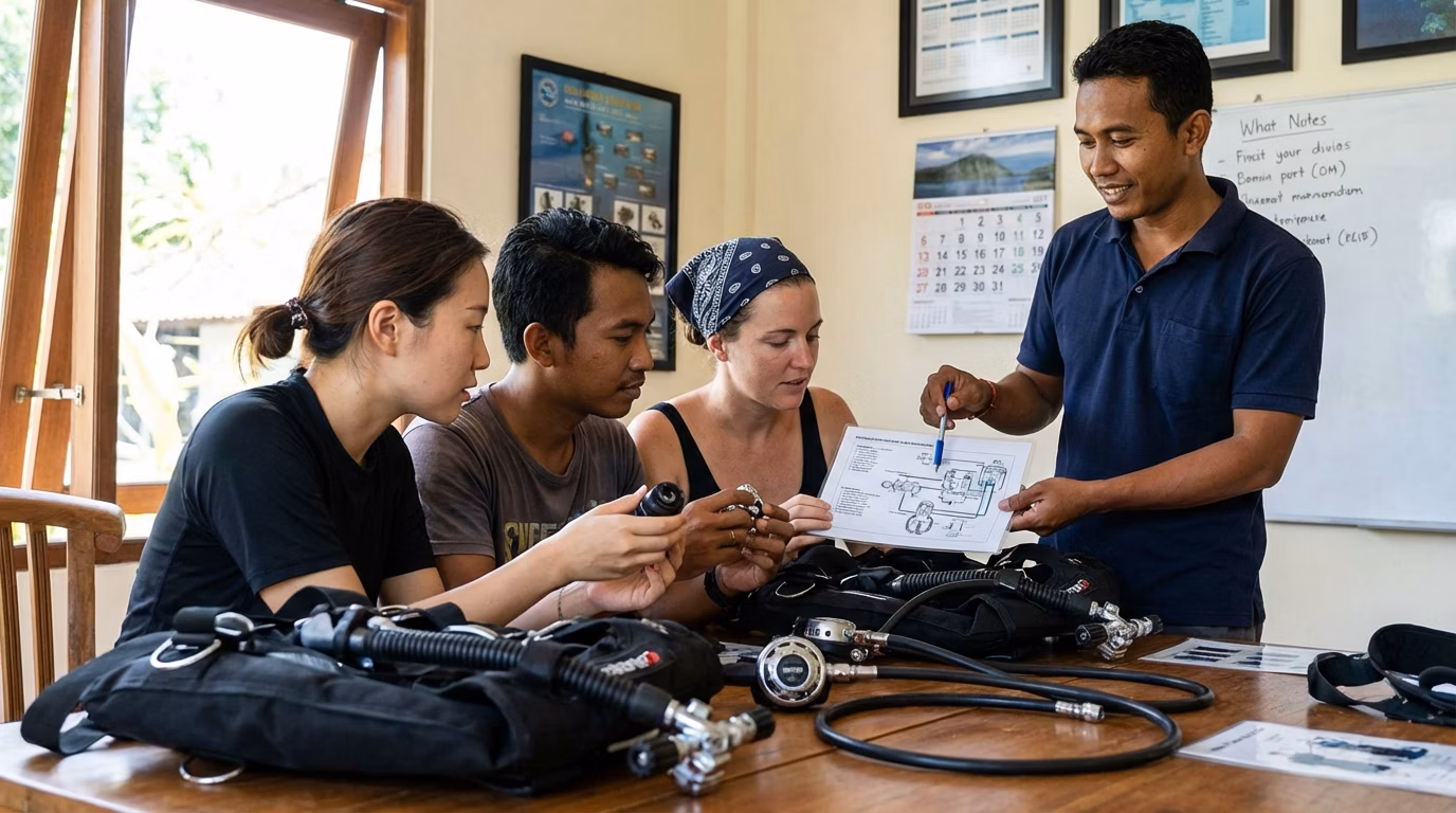 If you’re searching for PADI Sidemount Diver Course Bali, here’s how the course usually runs. Finish the knowledge part first so your Bali time stays fun and in-water.