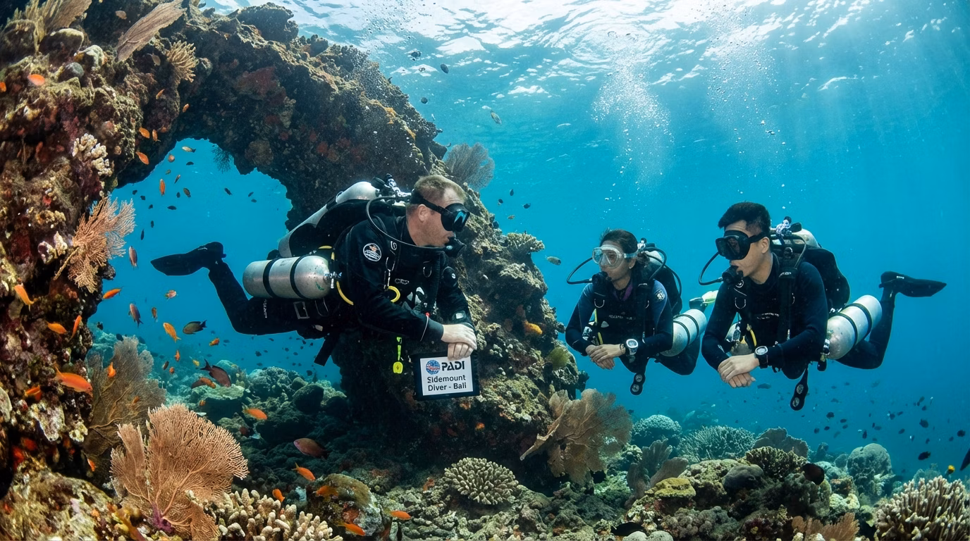 PADI Sidemount Diver in Tulamben, Bali. Learn comfortable sidemount setup, trim, and skills for more flexibility and streamlined diving.