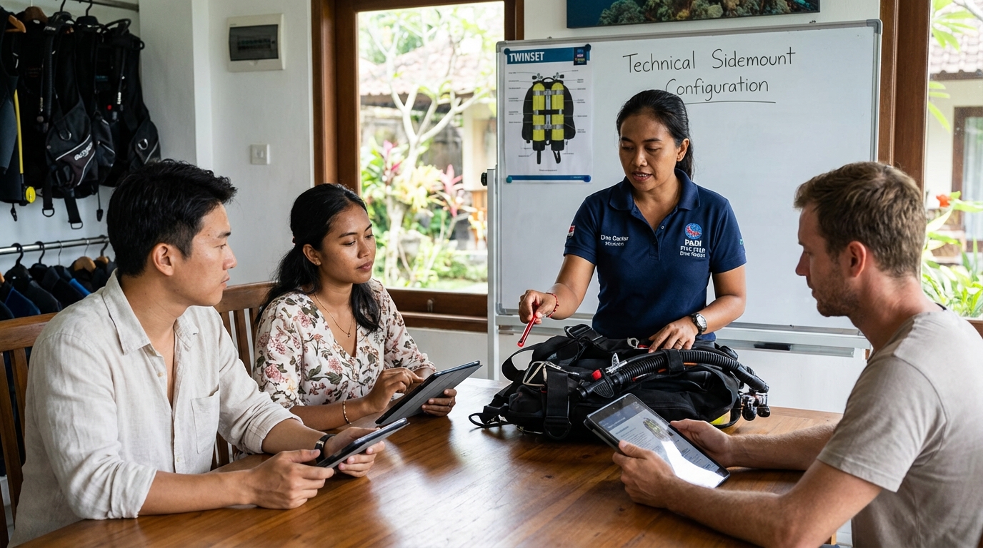 If you’re searching for PADI Tec Sidemount Course Bali, here’s how the course usually runs. Do a little prep first, then enjoy the dives when you’re here.