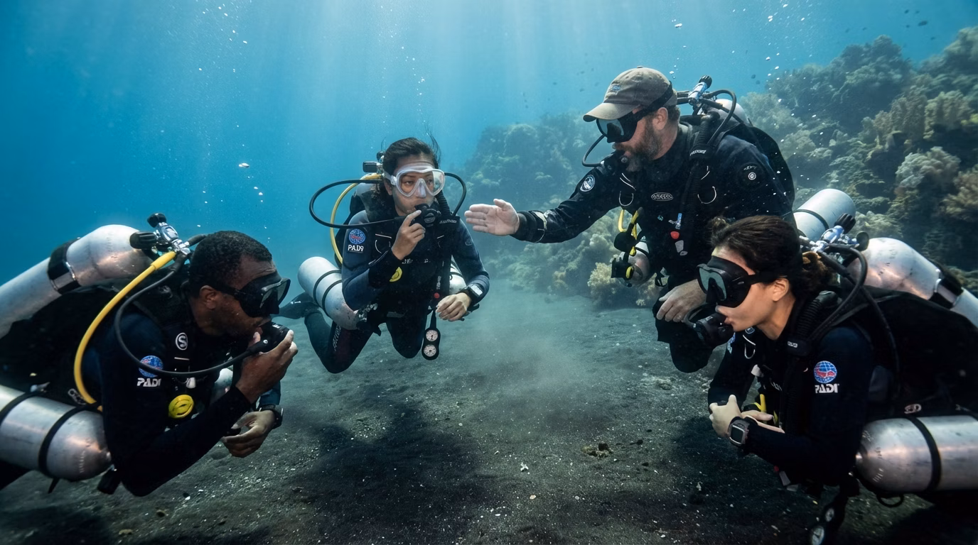 Confined water: 1 Session · Open sea dives: 4 Dives