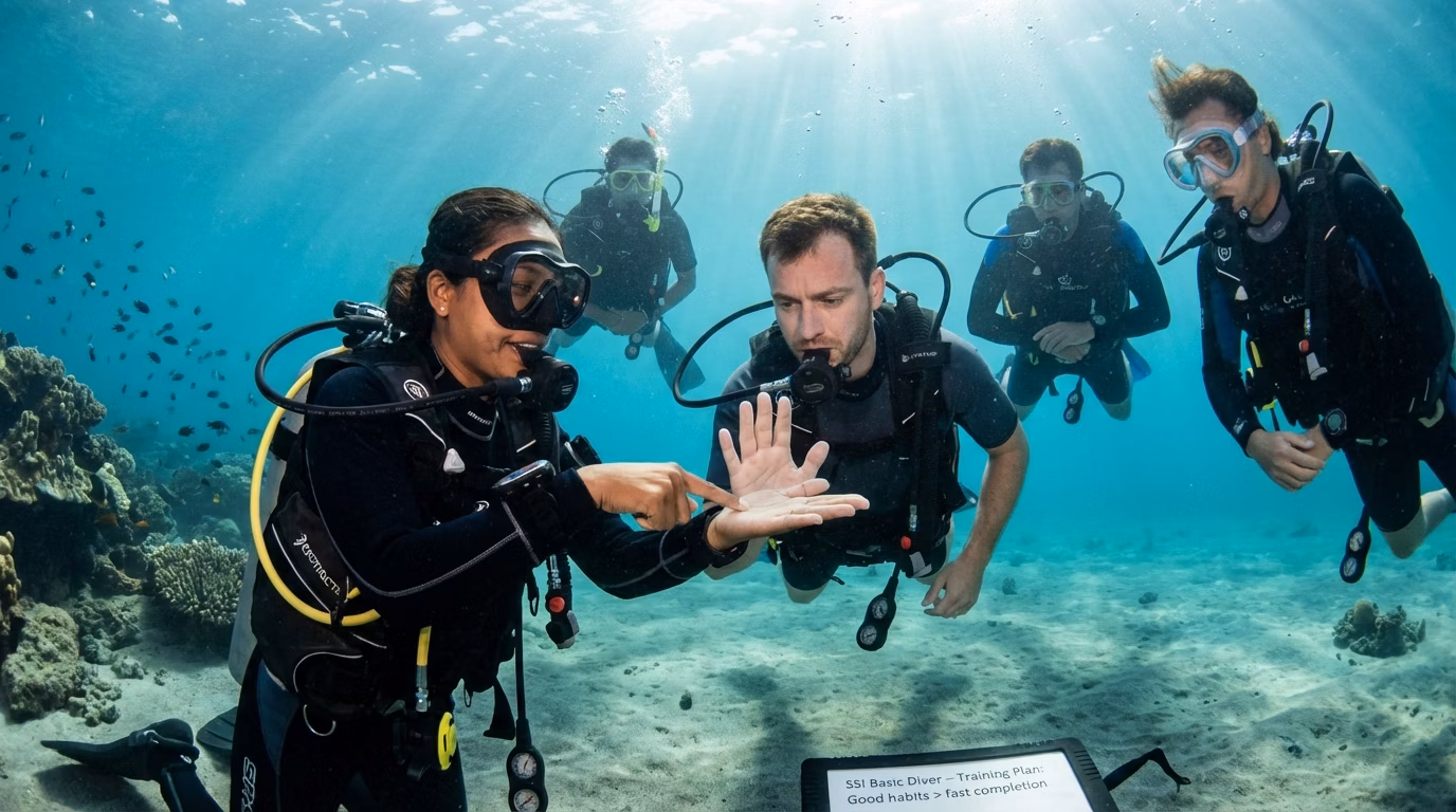The SSI Basic Diver (Bali) curriculum outlines the key skills and training steps you’ll complete during the course.
