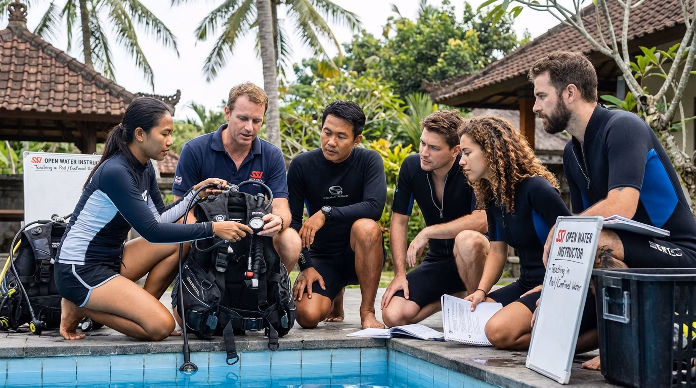 If you’re searching for SSI Open Water Instructor Course Bali, here’s how the course usually runs. Finish the knowledge part first so your Bali time stays fun and in-water.