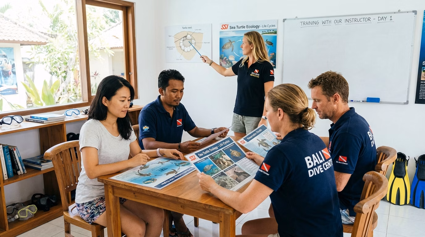 If you’re searching for SSI Sea Turtle Ecology Specialty Bali, here’s how the course usually runs. Finish the knowledge part first so your Bali time stays fun and in-water.