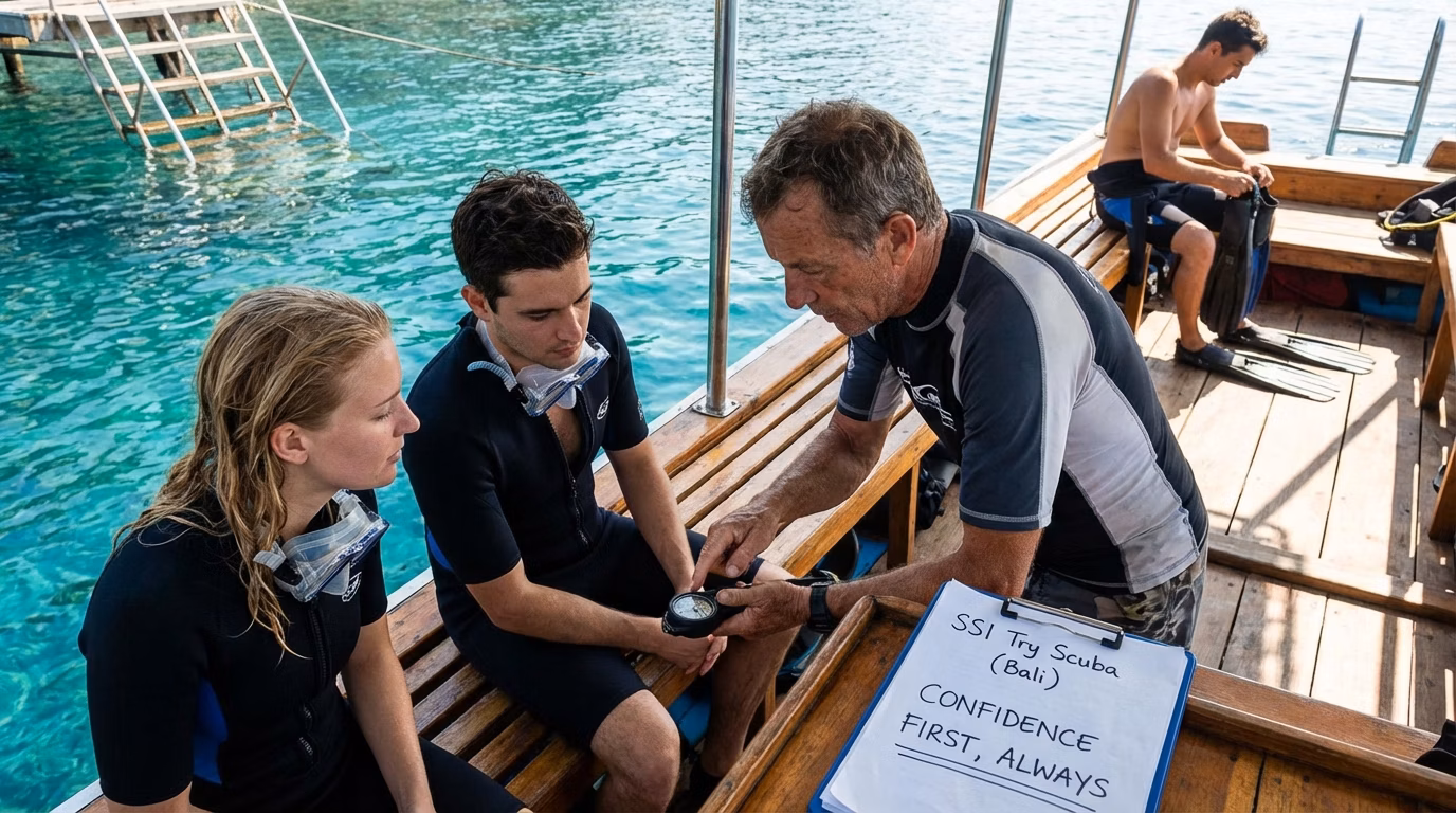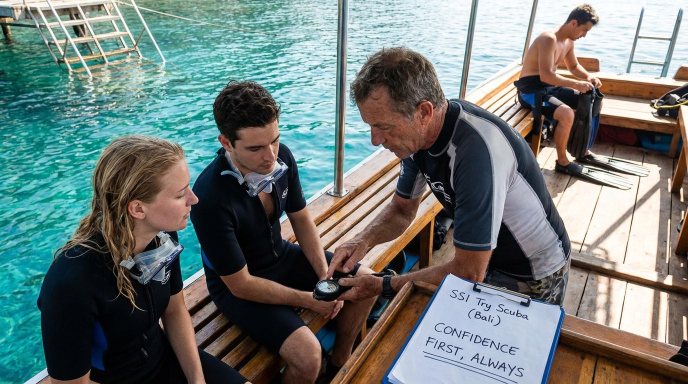 If you’re searching for SSI Try Scuba Bali, here’s how the course usually runs. Do a little prep first, then enjoy the dives when you’re here.