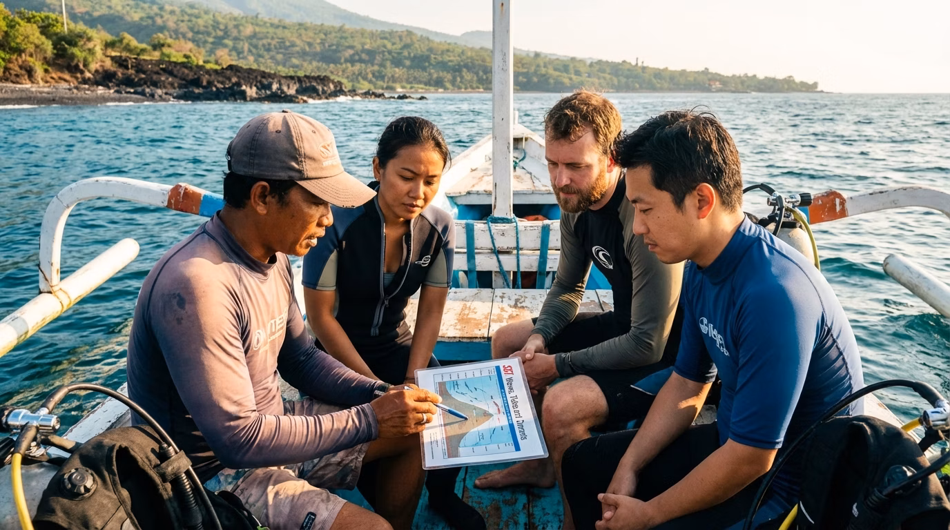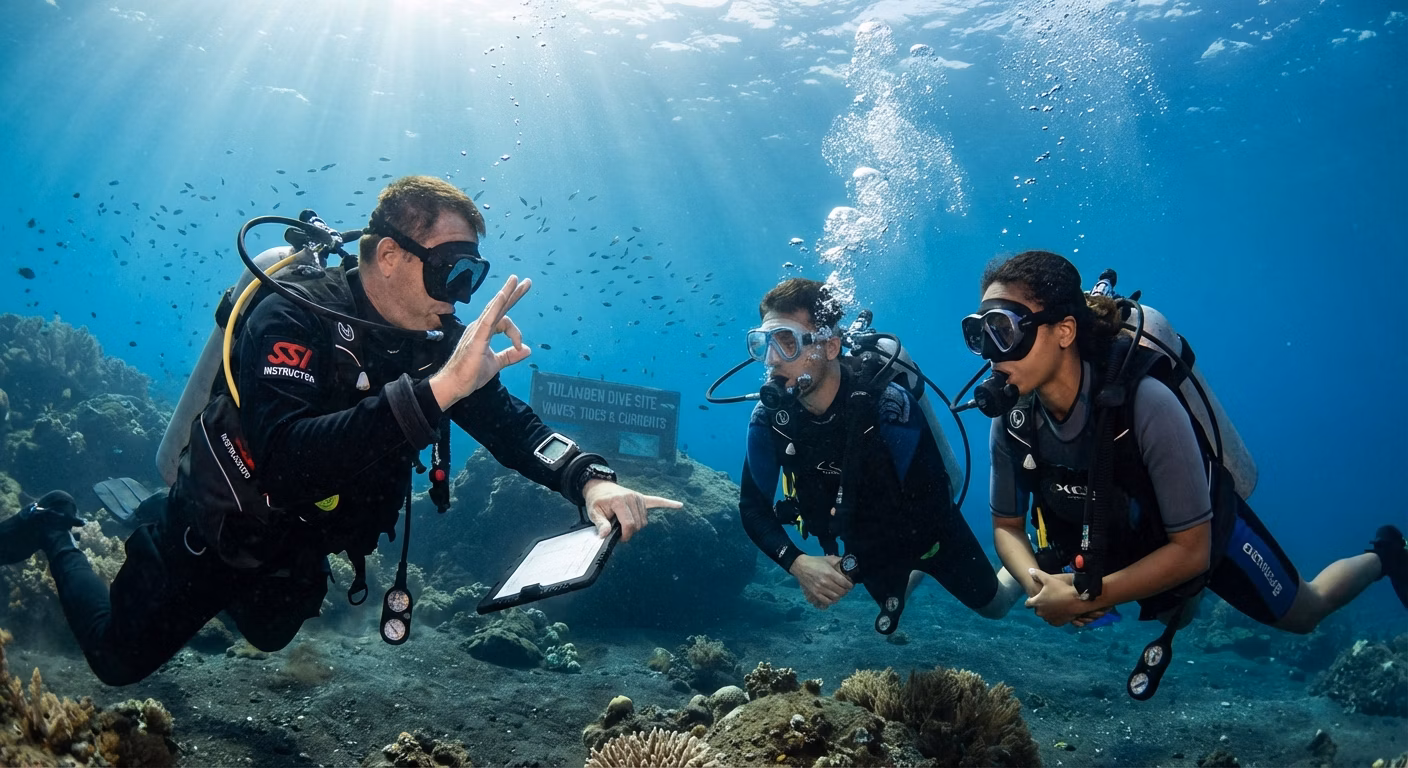 SSI Waves, Tides and Currents Specialty in Tulamben, Bali. Understand waves, tides & currents—plan safer dives, improve entries/exits, and stay in…